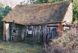 The doorways were kept at their original height and positions. New doors were designed and made based on the assortment of old barn doors. These include a little hayloft door, that replaces one long gone. Only two old-style strap hinges remained on the old barn doors. These have been put back on the new doors, along with new hinges made by a blacksmith to match the existing ones. Wooden oak latches were made to match others found on the farm. The rotten hayloft floor was replaced with strong new wood. All the old clay peg tiles were brushed clean and put back on the roof. The barn is now a safe and useful building, and everyone agrees it is very handsome. |