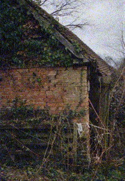| The old brick barn in the farmyard had suffered over the years. The bottom of the front wall had rotted and the wall had sunk down. The roof had followed and was bowed down at the front. It had also moved sideways over the years. The nails holding the roofing battens had rusted and the battens and clay tiles were starting to slip. The end walls had large cracks in them. The barn was in a dangerous state, but it could be saved. It is a traditional farm building in a vernacular style, so was eligible for some grant aid under the Countryside Stewardship Scheme. It has some old graffiti on the walls, including initials believed to have been carved by local historian E. Kimber, and another older set dated 1877. |