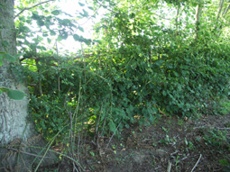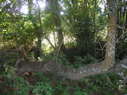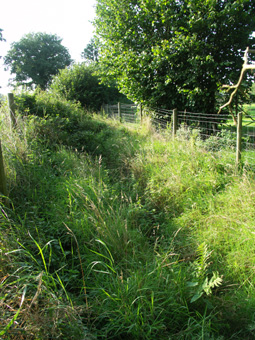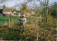 | When we moved into Burrells Farm, livestock had not been kept here for many years. The fields had been used for set-aside or silage, and the hedges had been flailed. As a result the fencing had deteriorated, weed species such as thistle, docks, ragwort and brambles were taking over the grassland, and the hedges had grown tall and thin at the base. Flail damage and increased shade had killed some of the hedge plants, leaving gaps. The willow trees had grown old and the branches were breaking off. The ditch was silted up and becoming overgrown with brambles. |
