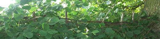 | Where there is a gap in the hedge, new plants are put in or old ones are layered to root into new plants. The work is done over the winter, while the plants are dormant. It is finished by the end of February, before the birds start nesting. The hedge sprouts a little bit later than normal that spring, but after that it is back to normal and growing well. The plants get more sunlight and can grow thickly from the base again. The hedges are protected from hungry grazing sheep by new fencing. The long-term plan is for them to be thick and stock-proof again. |